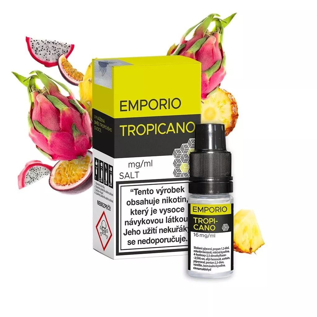 Vydajte sa na chutnú cestu do tropického raja s e-liquide Tropicano Emporio SALT, vyváženou zmesou tropického ovocia. Český výrobca Emporio sa vracia s obľúbenými receptúrami a prináša nové, lákavé príchute, ako sú tropické ovocie a slaný karamel. Emporio SALT náplne, ktoré obsahujú nikotínovú soľ (NicSalt), sú k dispozícii v silách 12 mg/ml a 20 mg/ml.
