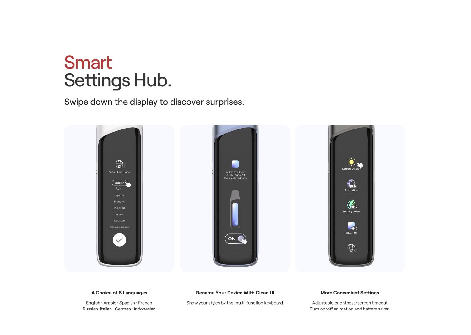 S vstavanou batériou s kapacitou 1800 mAh vám Caliburn G4 Pro zabezpečí dostatok energie na celý deň. Výkon je nastaviteľný až do 35 W, čo umožňuje prispôsobiť si zážitok podľa želania – od jemného MTL po silnejší DTL. Rýchle nabíjanie cez USB-C redukuje čas nabíjania na minimum a udrží vás stále v pohybe.