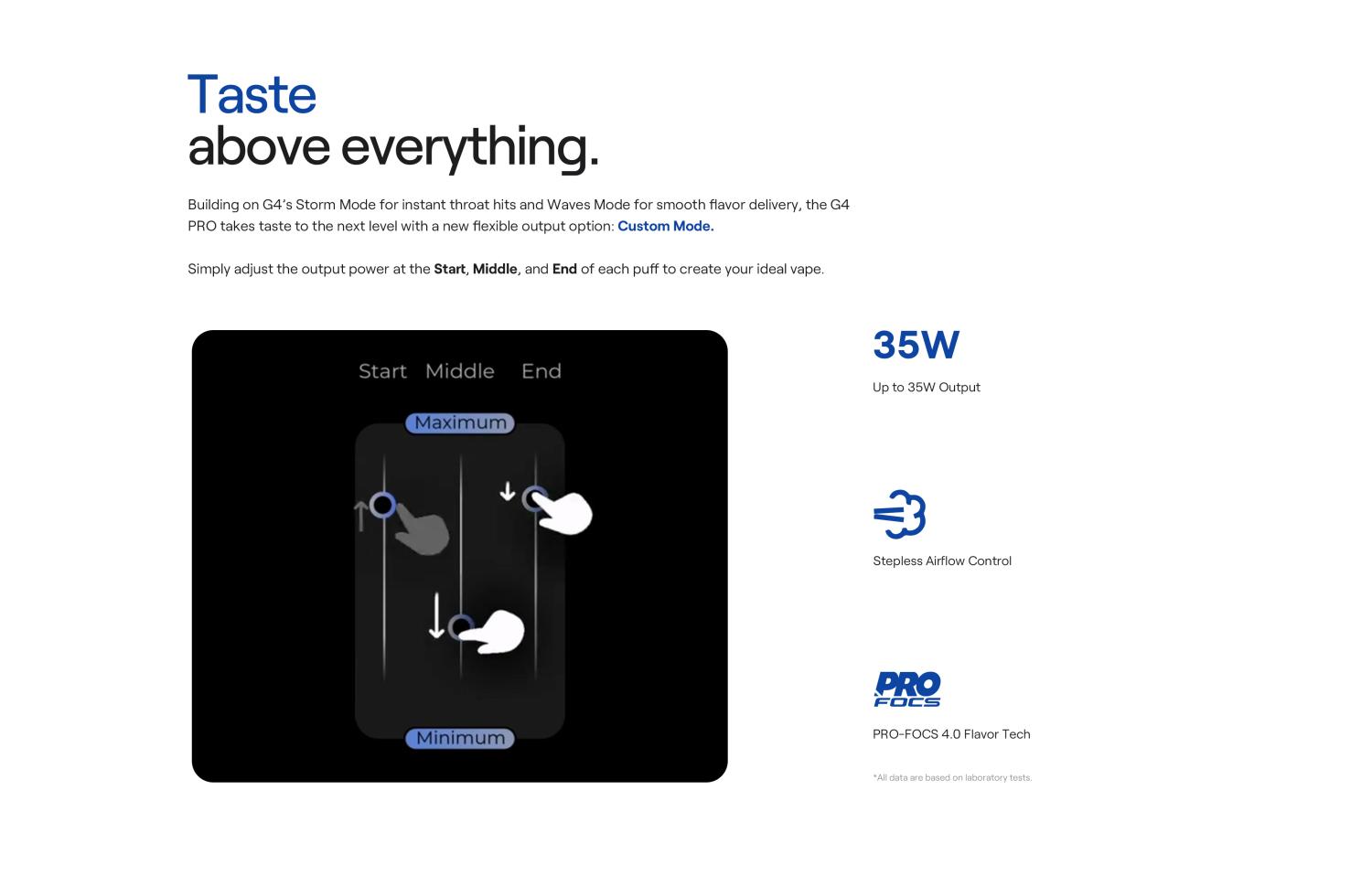 Toto zariadenie podporuje variabilný výkon, plynulú reguláciu prúdenia vzduchu a má systém bočného plnenia s okienkom vo tvare kvapky, ktoré uľahčuje kontrolu množstva náplne. Magnetické pripojenie podu umožňuje jednoduchú výmenu týchto komponentov. Kompatibilné s podmi GPP (0,4Ω a 0,6Ω) je ideálne pre rôzne štýly vapovania – či už preferujete jemné MTL alebo silnejšie DTL.