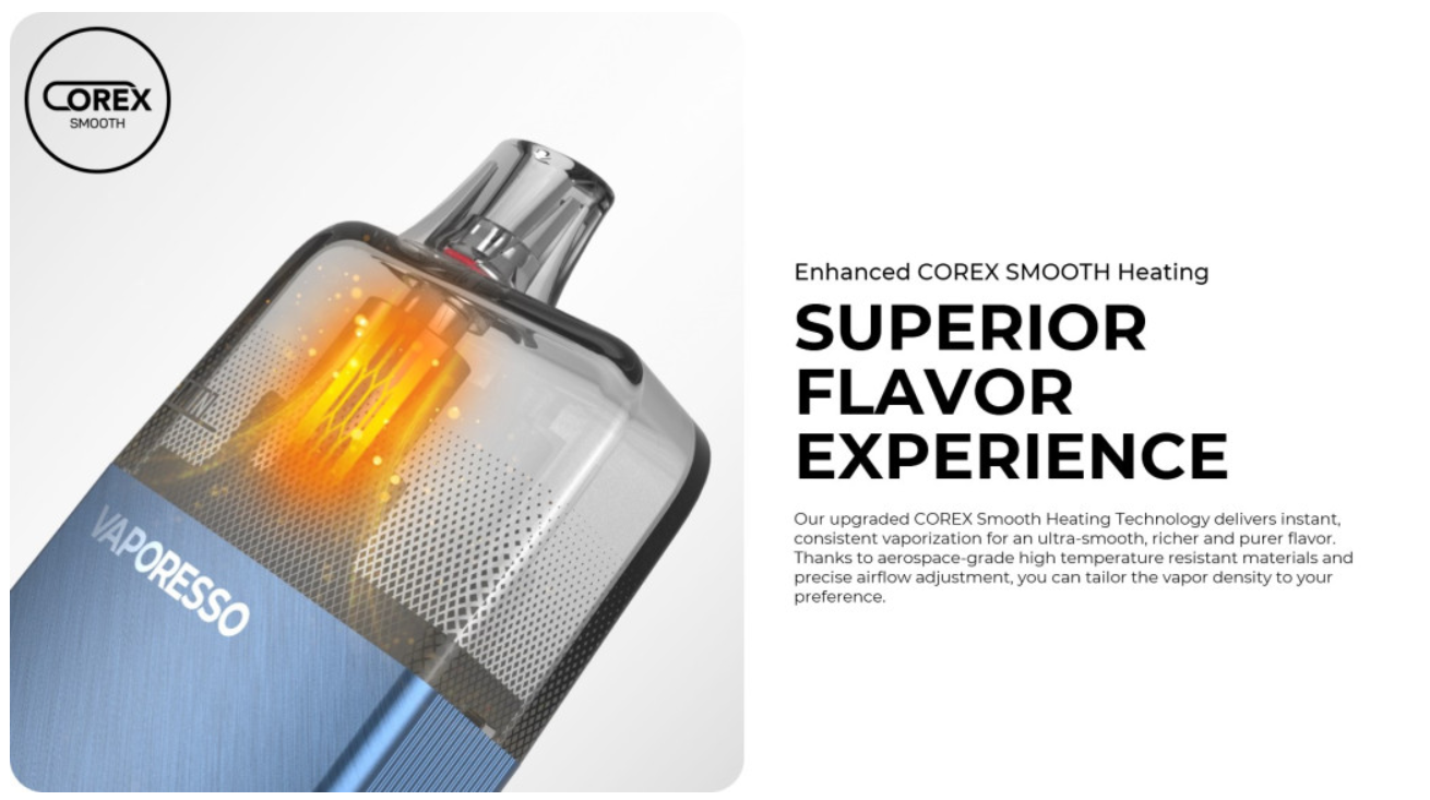 Poháňaná technológiou ohrevu Corex, poskytuje hladkú a konzistentnú chuť pri každom potiahnutí. Nastaviteľný prietok vzduchu vám umožňuje prispôsobiť si zážitok z vapovania presne podľa svojich preferencií. Digitálny displej vás neustále informuje o stave batérie, takže máte vždy prehľad o jej kapacite.